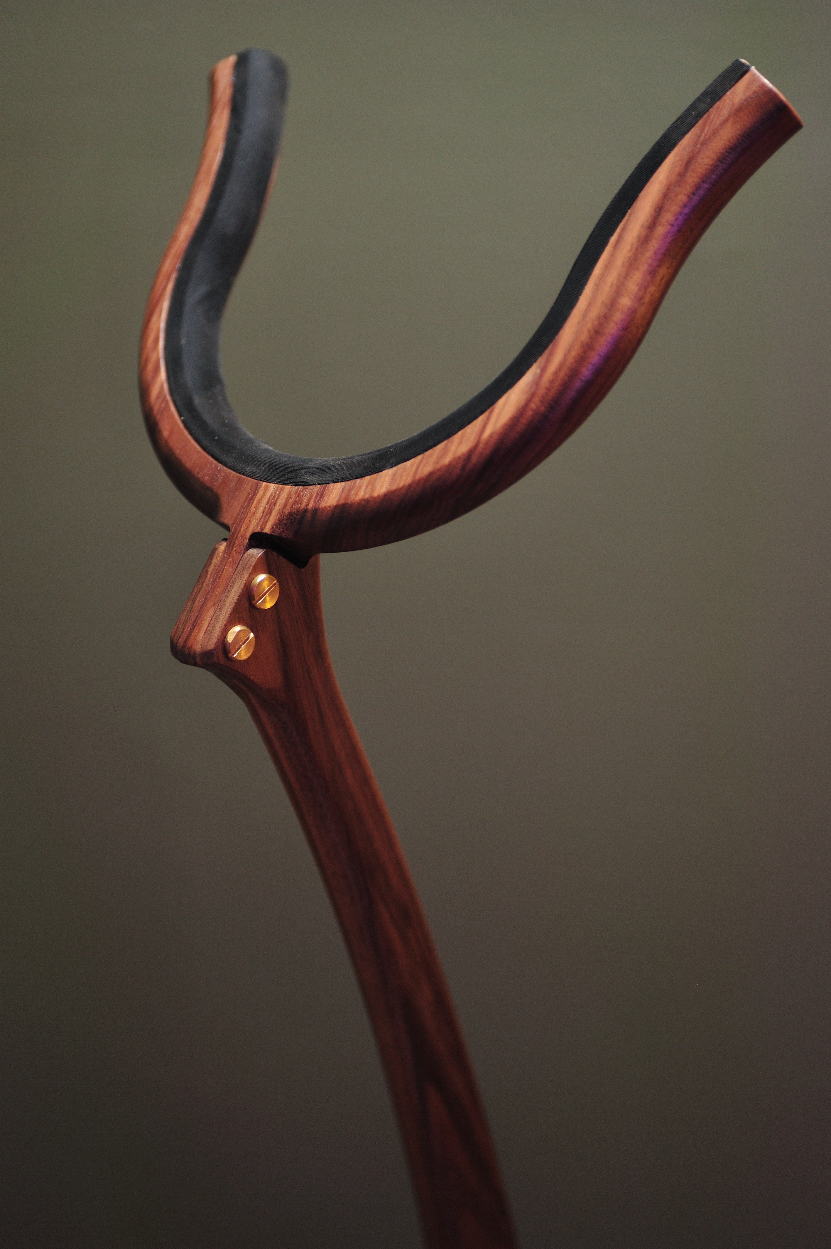 This is the stand that launched Wood & Winds as a brand. The floor stand for saxophone is made from solid hardwood, the only exceptions being the two solid brass connector bolts, and one steel bolt that secures the base to the rest of the stand.